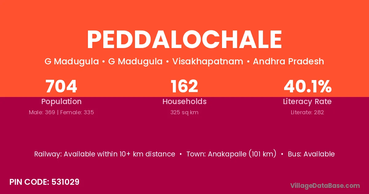 Anakapalle (101 km) is the nearest town to Peddalochale village for major economic activities and is located approximately 101 km away.