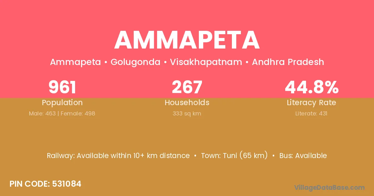 According to Census 2011 information, the village code of Ammapeta village is 531084.