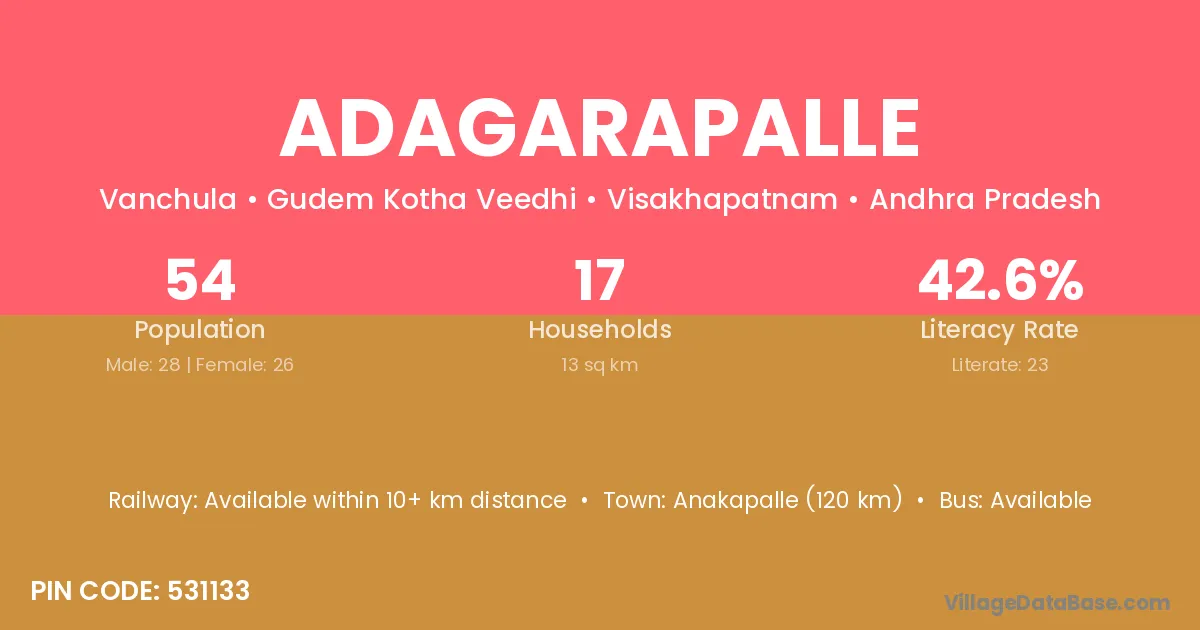 According to Census 2011 information, the village code of Adagarapalle village is 531133.