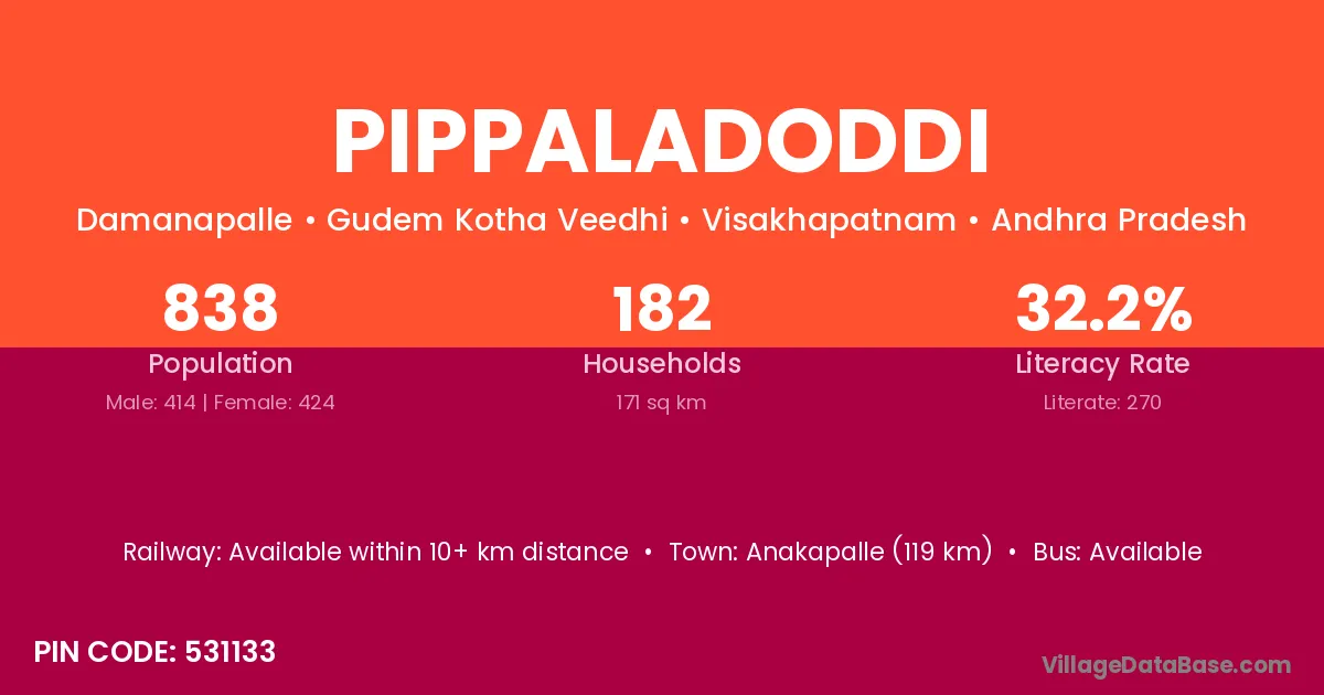 According to Census 2011 information, the village code of Pippaladoddi village is 531133.