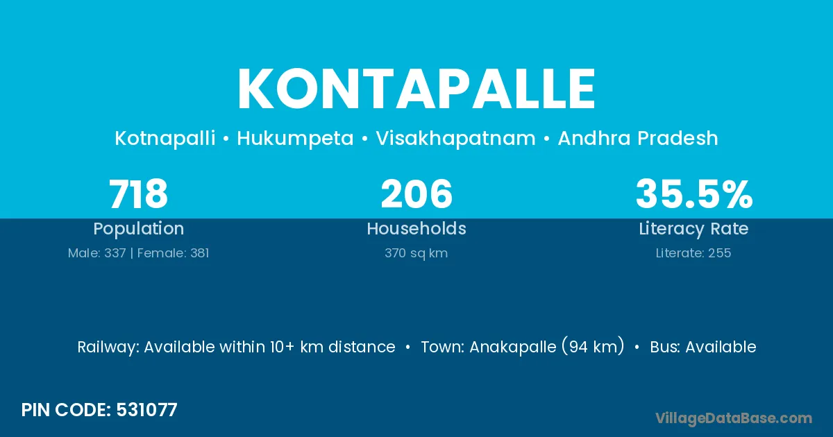 According to Census 2011 information, the village code of Kontapalle village is 531077.