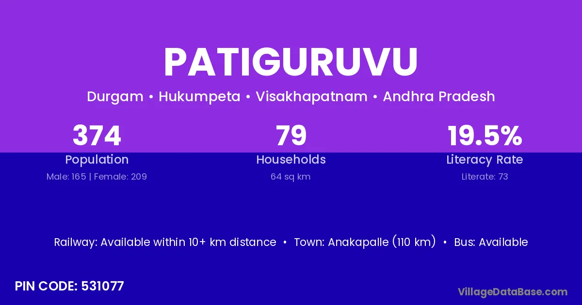 Patiguruvu village is located in the Hukumpeta Mandal of the Visakhapatnam district in Andhra Pradesh .