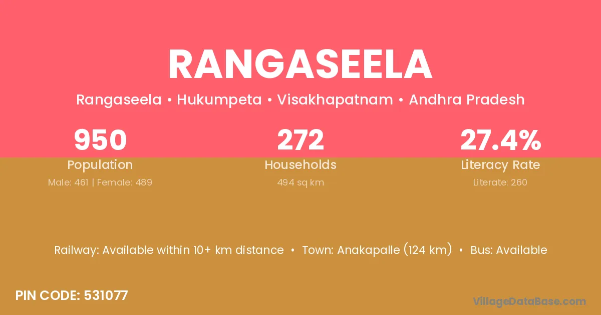 Anakapalle (124 km) is the nearest town to Rangaseela village for major economic activities and is located approximately 124 km away.