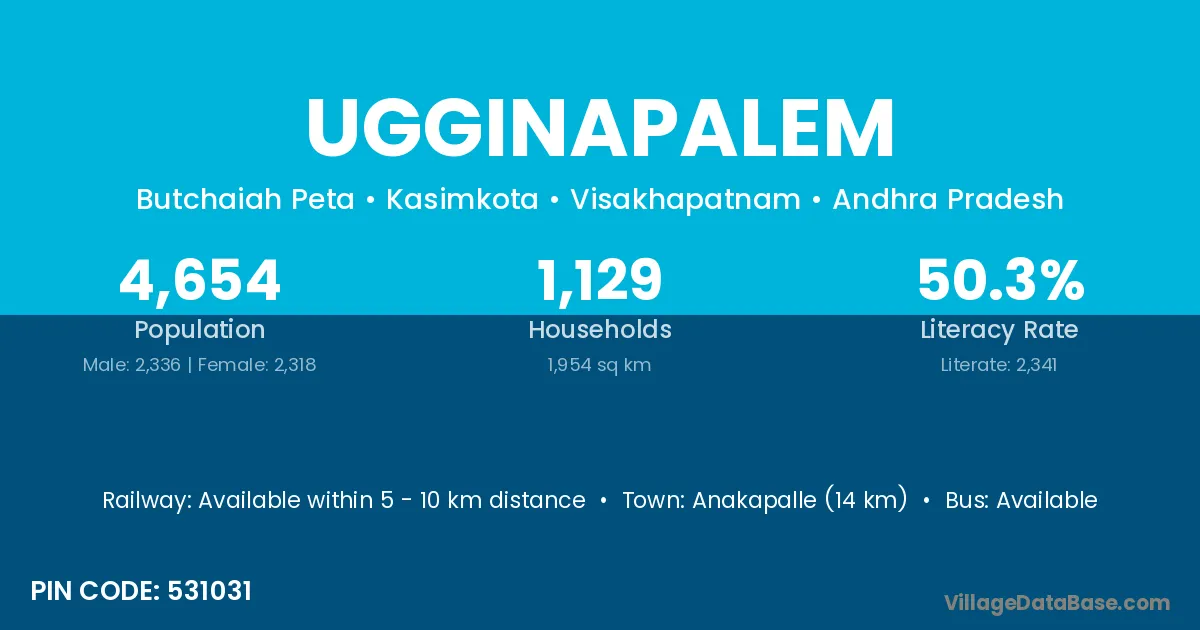 Anakapalle (14 km) is the nearest town to Ugginapalem village for major economic activities and is located approximately 14 km away.