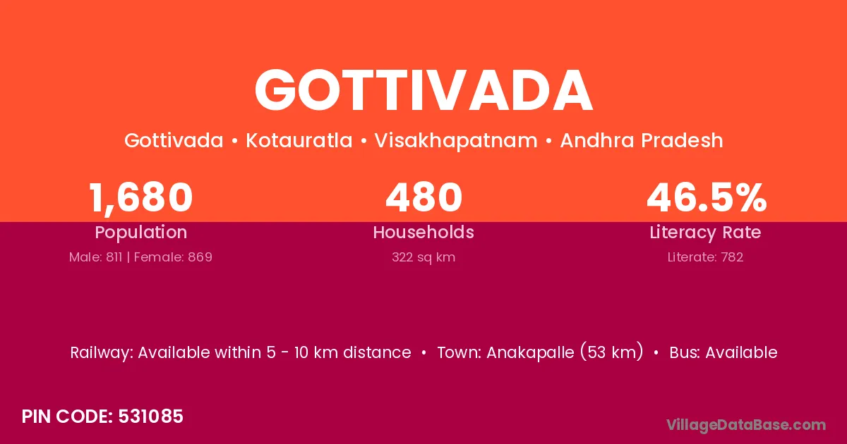 According to Census 2011 information, the village code of Gottivada village is 531085.