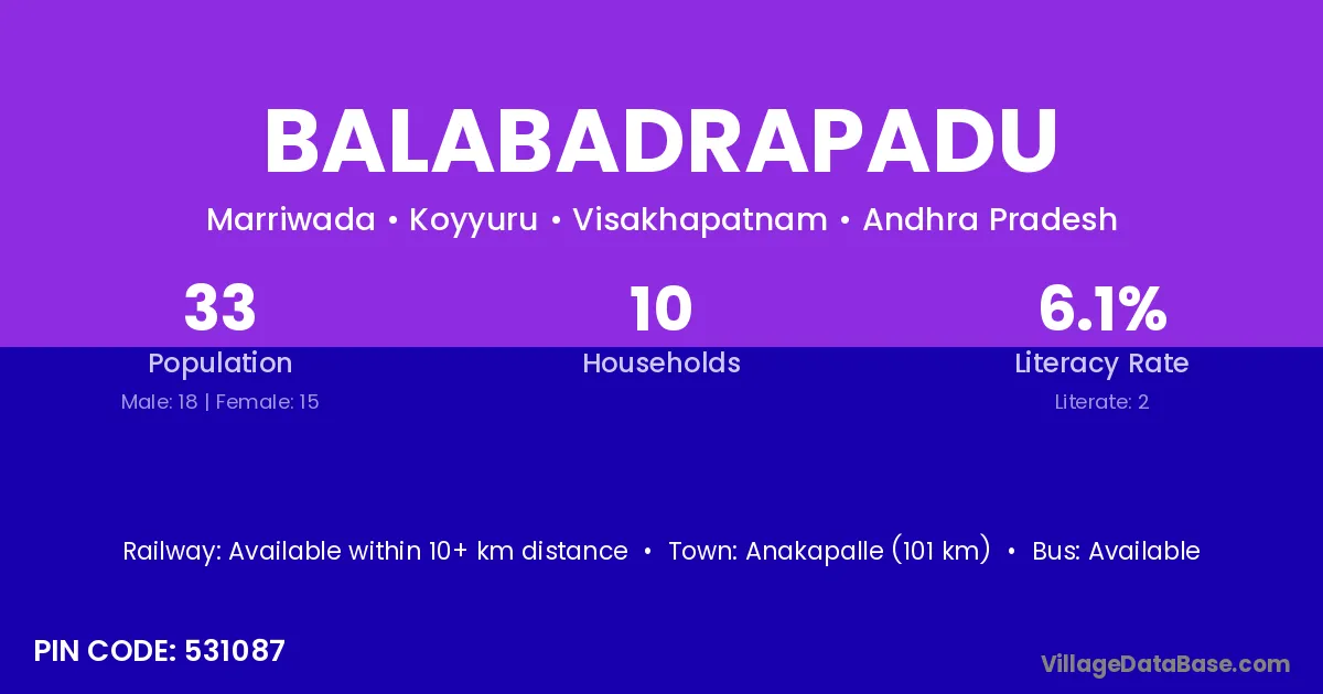 According to Census 2011 information, the village code of Balabadrapadu village is 531087.