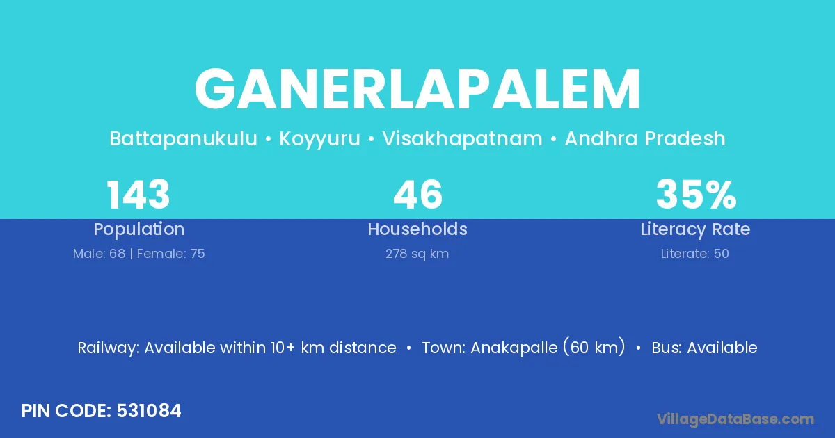 According to Census 2011 information, the village code of Ganerlapalem village is 531084.