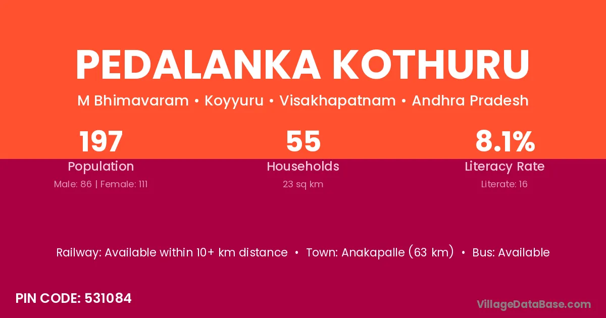 According to Census 2011 information, the village code of Pedalanka Kothuru village is 531084.
