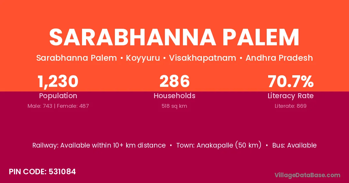 According to Census 2011 information, the village code of Sarabhanna Palem village is 531084.