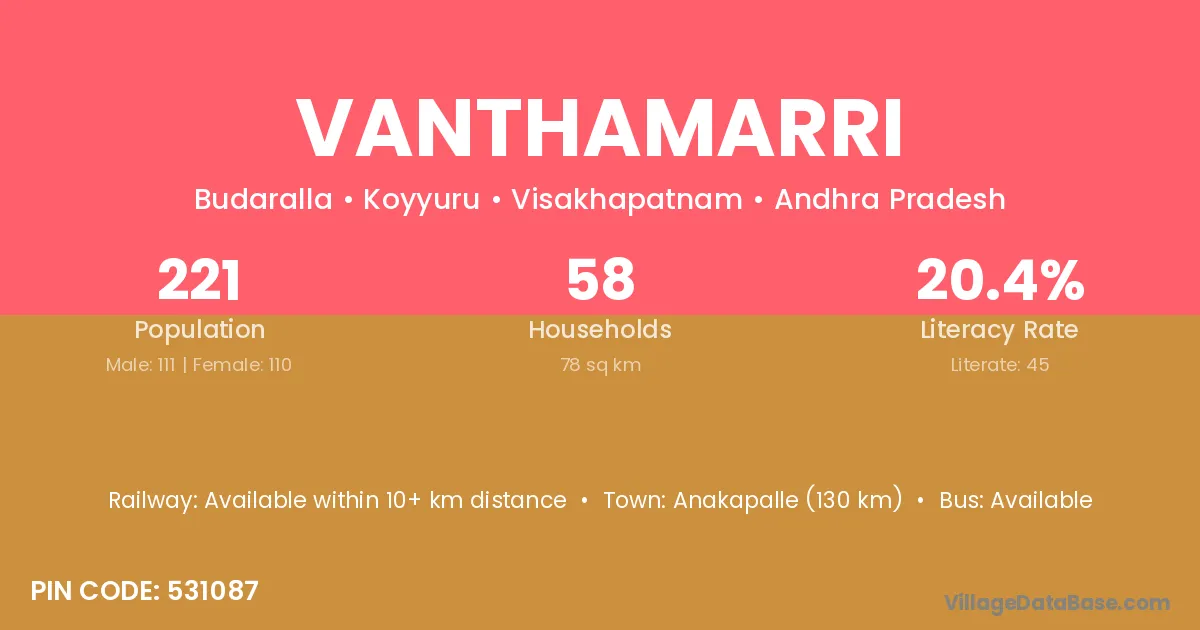 Vanthamarri village has a total population of 221 people, of which 111 are males and 110 are females.