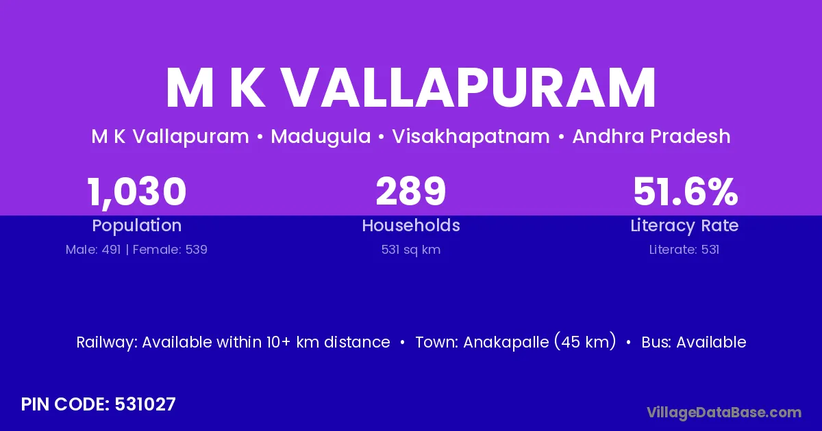 According to Census 2011 information, the village code of M K Vallapuram village is 531027.