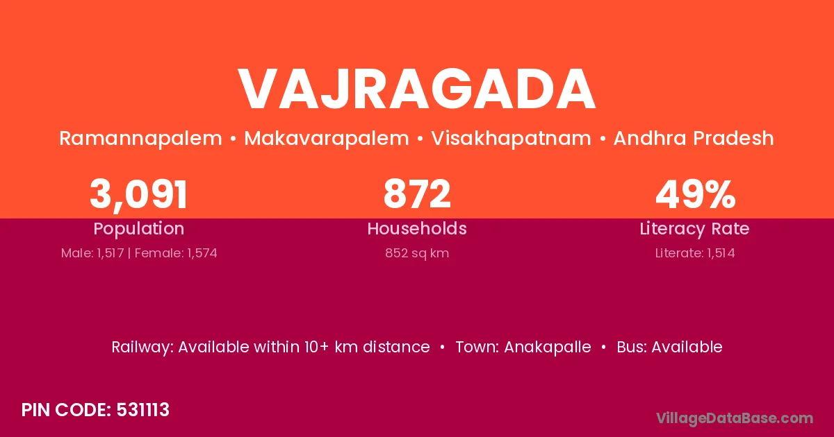 Anakapalle is the nearest town to Vajragada village for major economic activities