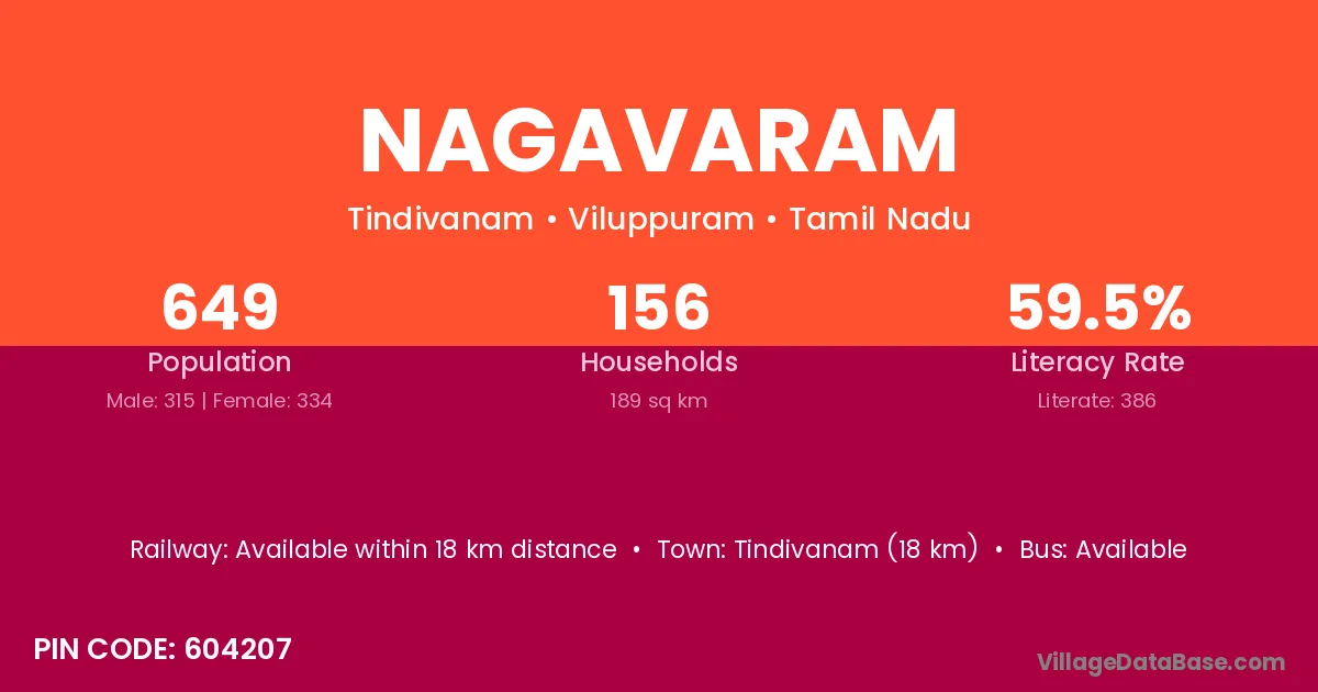 The literacy rate of Nagavaram village is 44.37%. Male literacy stands at 50.70% and female literacy at 37.78%.