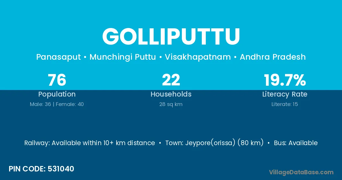 Golliputtu village has a total population of 76 people, of which 36 are males and 40 are females.
