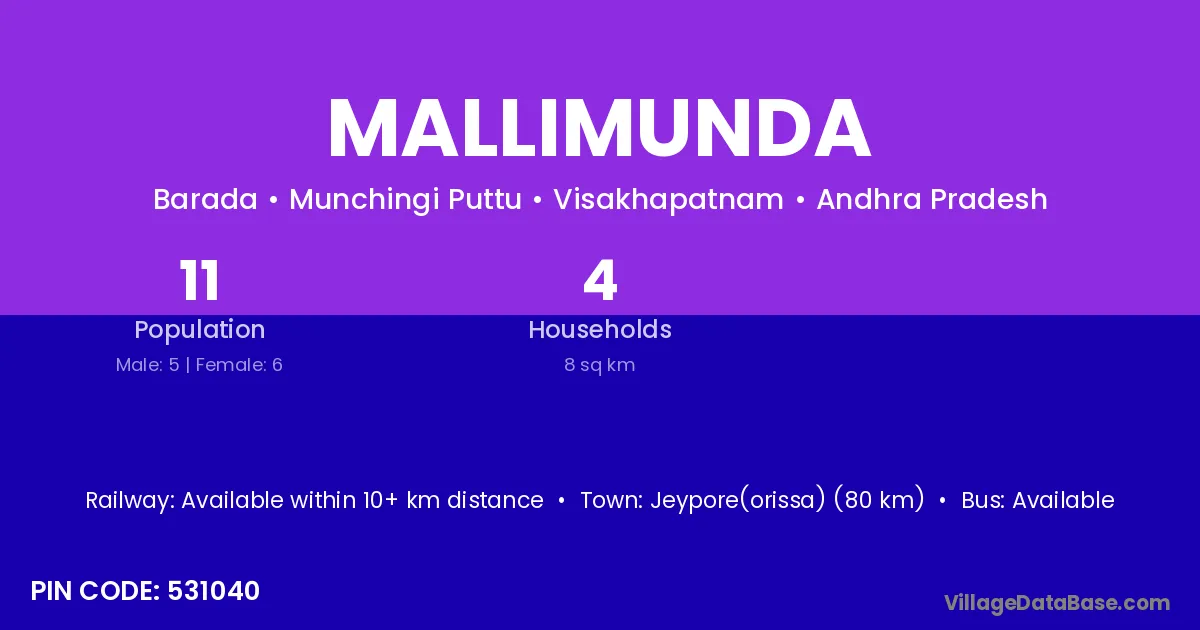 According to Census 2011 information, the village code of Mallimunda village is 531040.