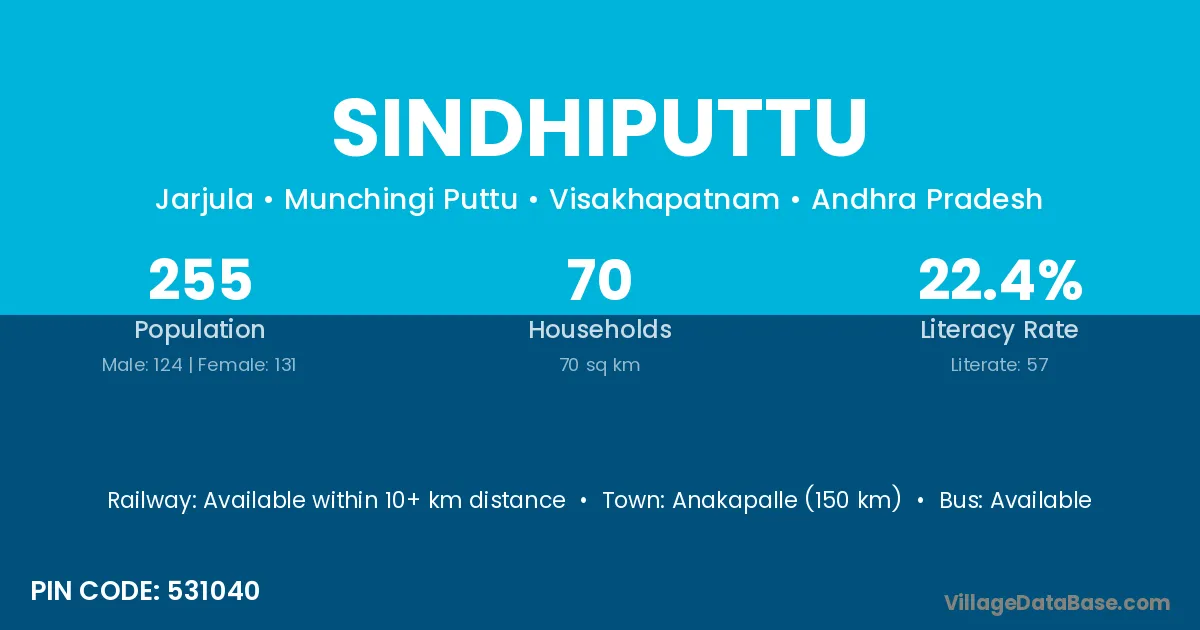 Sindhiputtu village has a total population of 255 people, of which 124 are males and 131 are females.