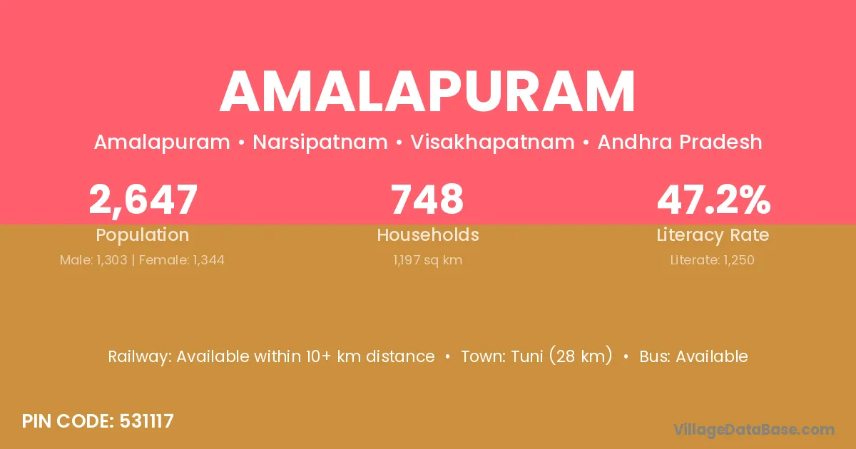 According to Census 2011 information, the village code of Amalapuram village is 531117.