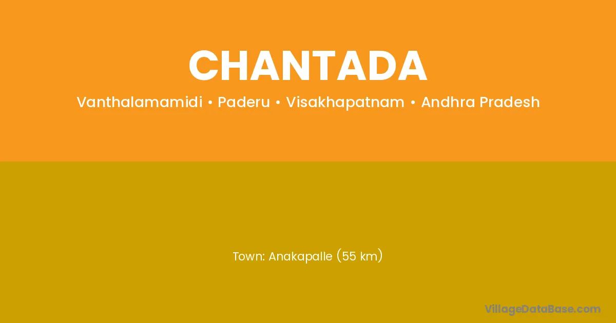 Anakapalle (55 km) is the nearest town to Chantada village for major economic activities and is located approximately 55 km away.