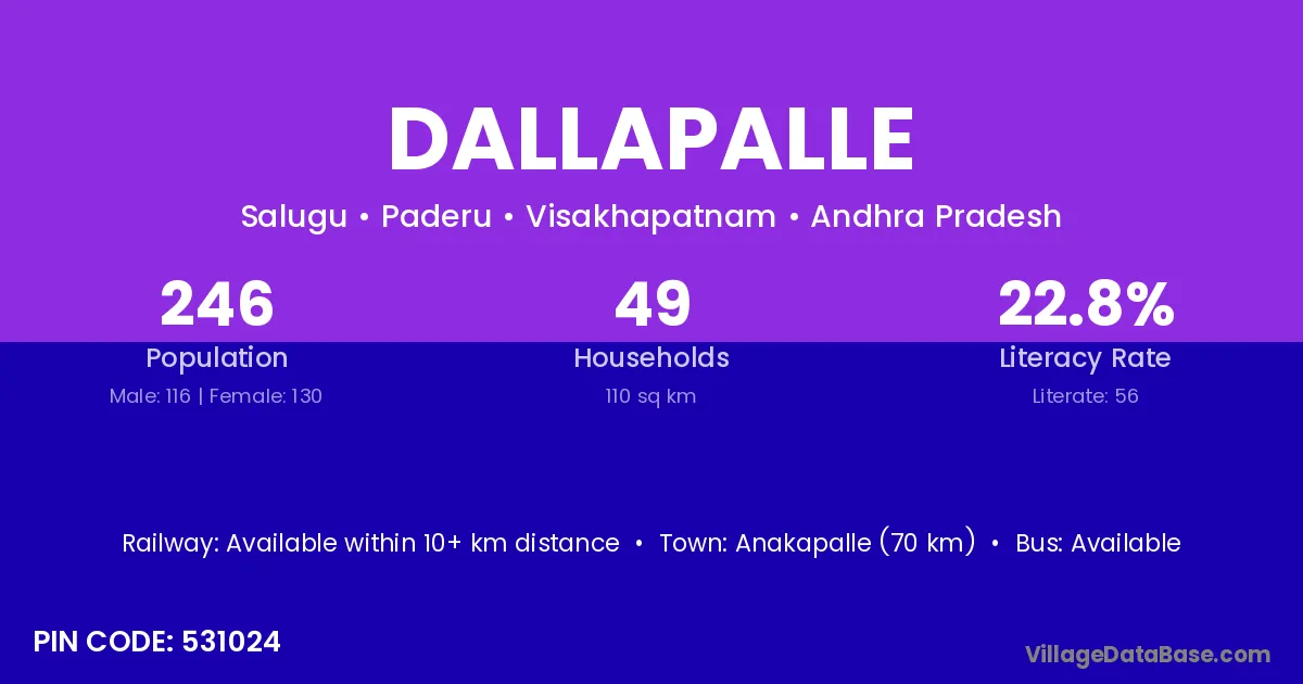 According to Census 2011 information, the village code of Dallapalle village is 531024.