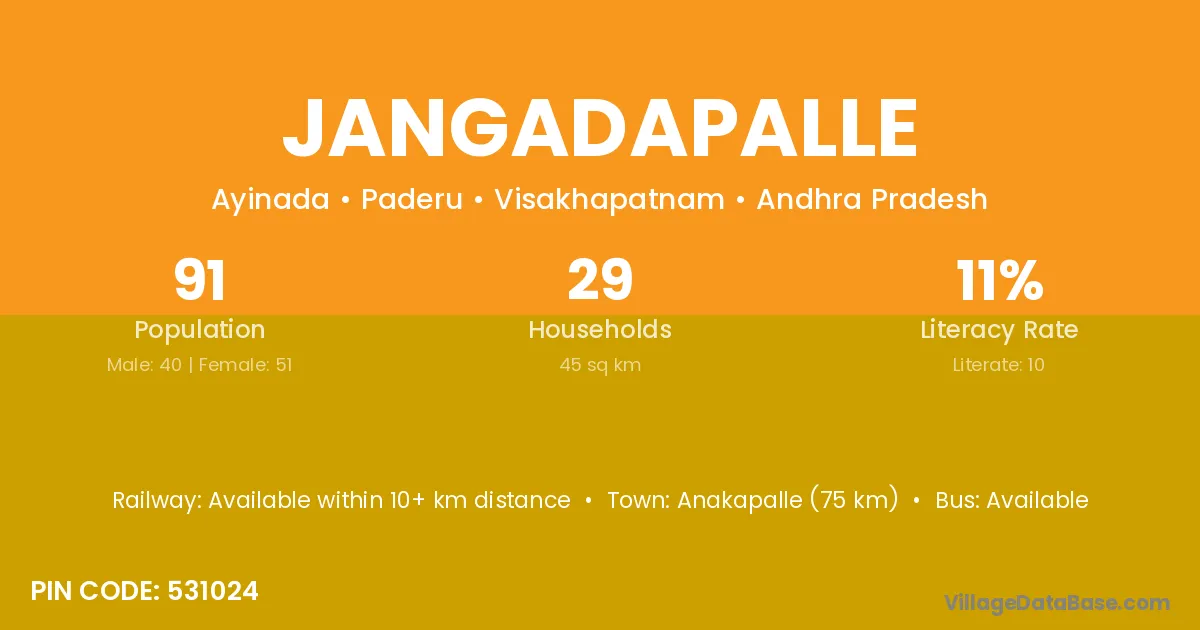 According to Census 2011 information, the village code of Jangadapalle village is 531024.