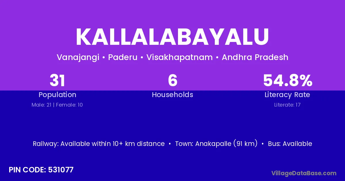 According to Census 2011 information, the village code of Kallalabayalu village is 531077.