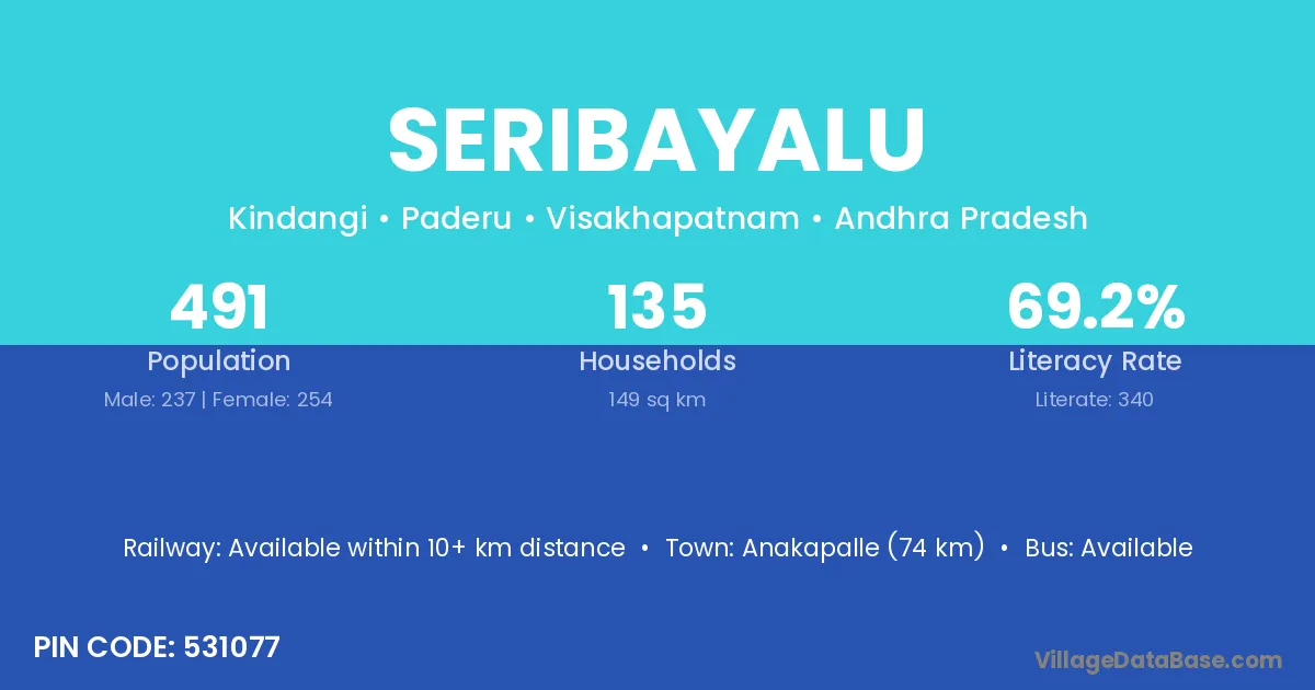 Seribayalu village has a total population of 491 people, of which 237 are males and 254 are females.