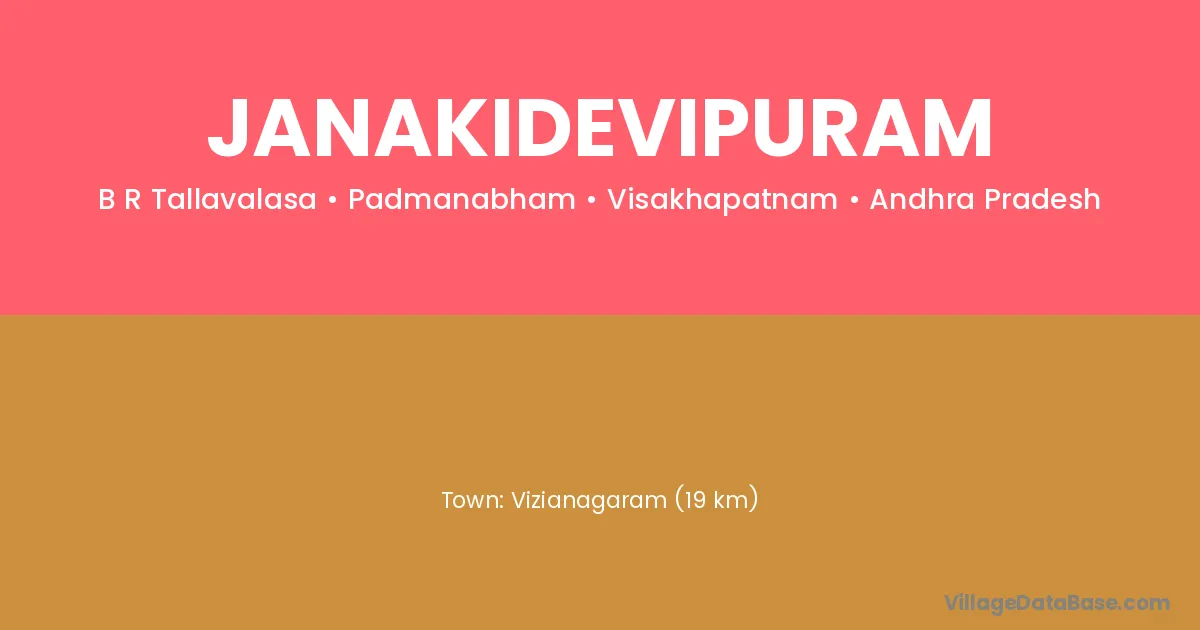 Vizianagaram (19 km) is the nearest town to Janakidevipuram village for major economic activities and is located approximately 19 km away.