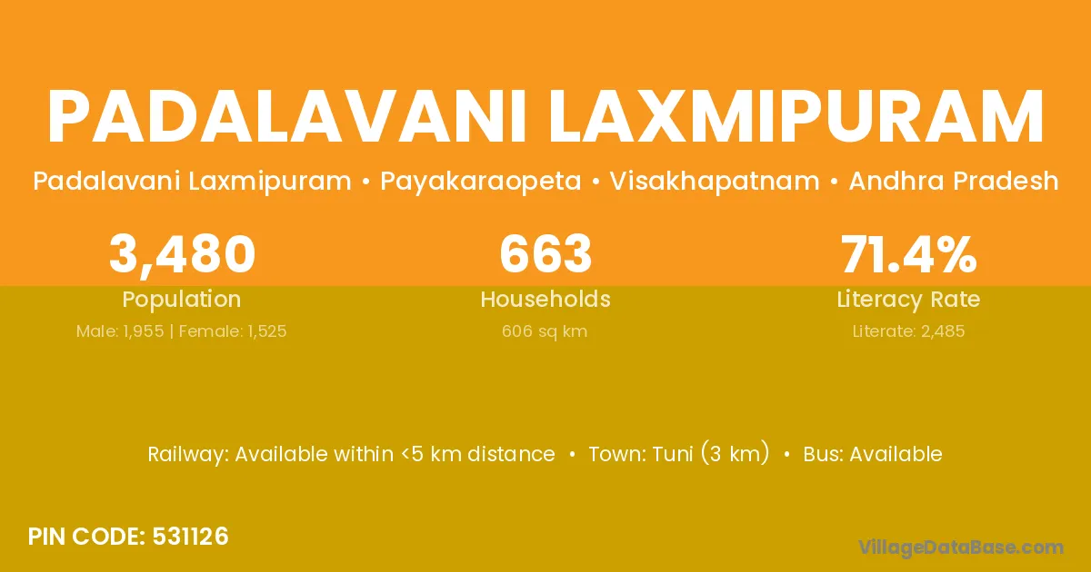According to Census 2011 information, the village code of Padalavani Laxmipuram village is 531126.