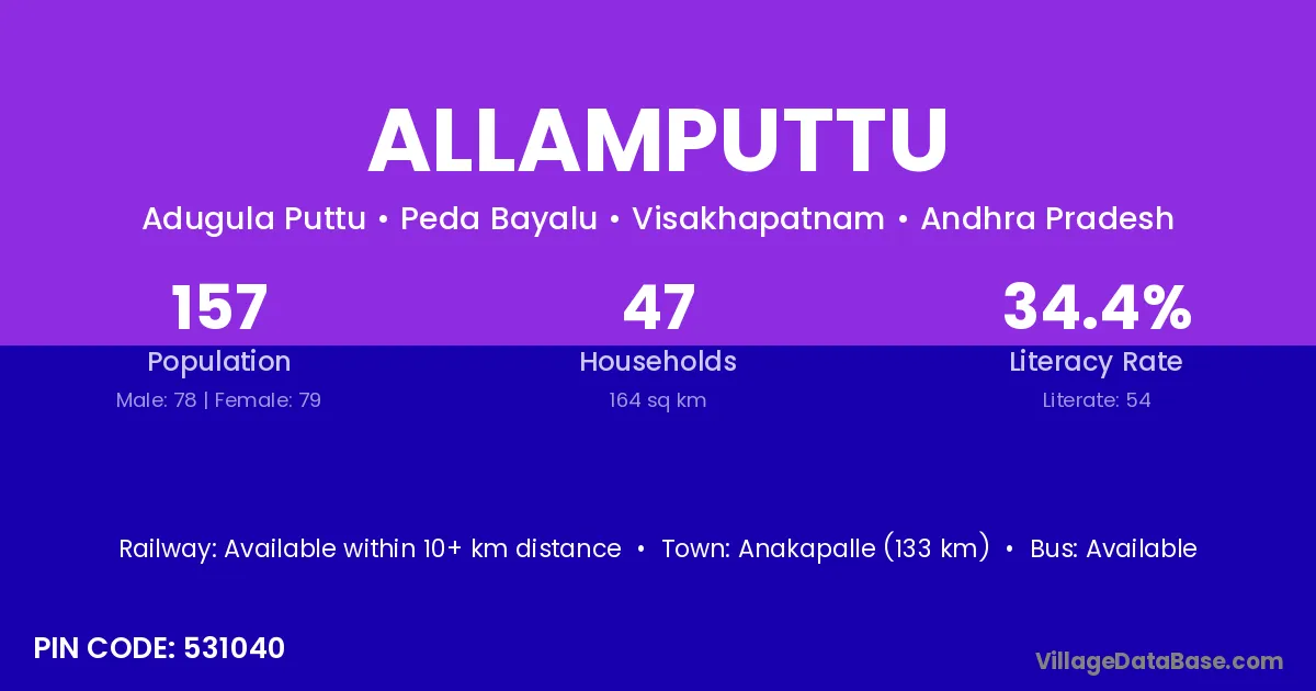 Allamputtu village has a total population of 157 people, of which 78 are males and 79 are females.