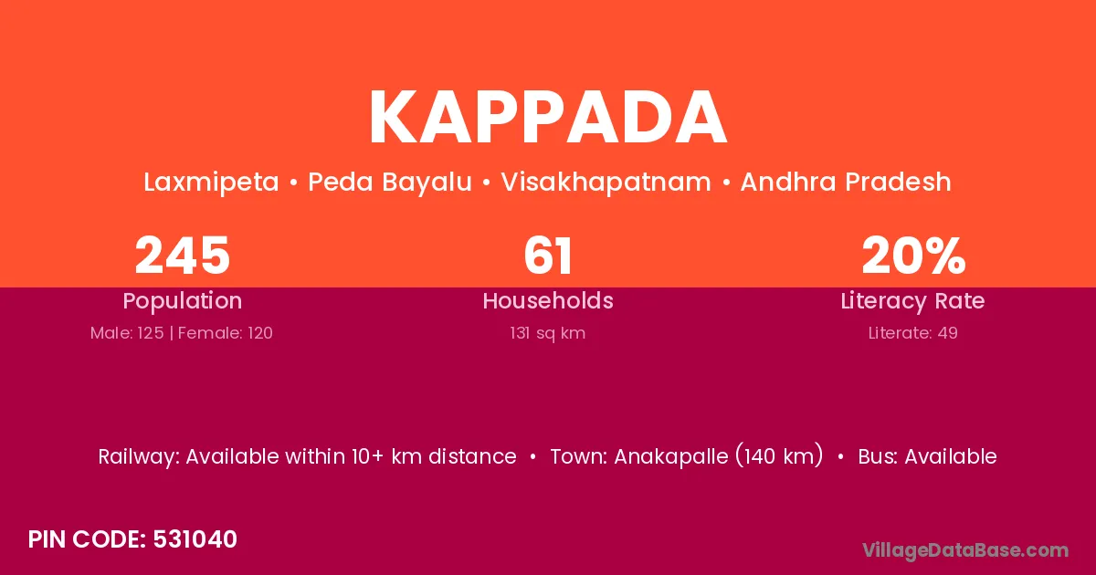According to Census 2011 information, the village code of Kappada village is 531040.