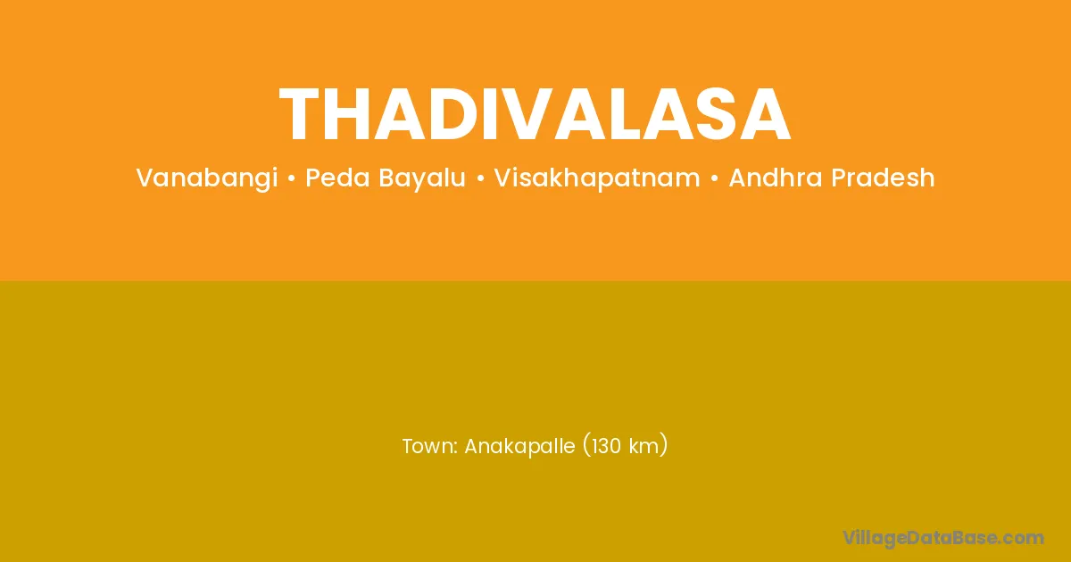 Anakapalle (130 km) is the nearest town to Thadivalasa village for major economic activities and is located approximately 130 km away.
