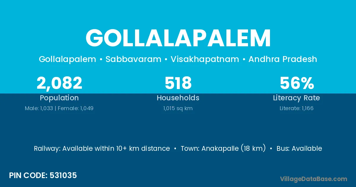 According to Census 2011 information, the village code of Gollalapalem village is 531035.