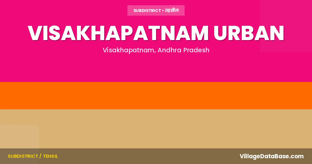 Visakhapatnam Urban is a town and Mandal in the Visakhapatnam district of the Andhra Pradesh. In India, a Mandal is a subdivision of a district responsible for the administration and revenue collection of a specific area within the district. Mandals play a crucial role in the local governance structure, contributing significantly to the development and administration of their communities.