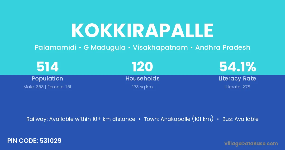According to Census 2011 information, the village code of Kokkirapalle village is 531055.