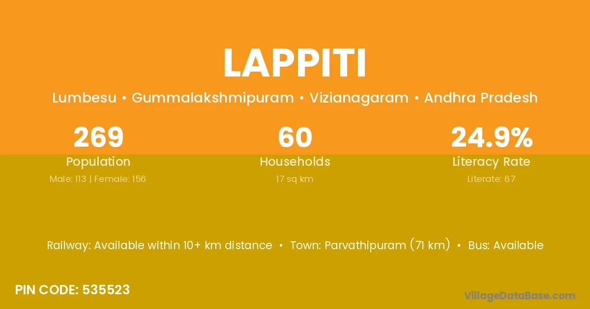 Lappiti village is located in the Gummalakshmipuram Mandal of the Vizianagaram district in Andhra Pradesh .