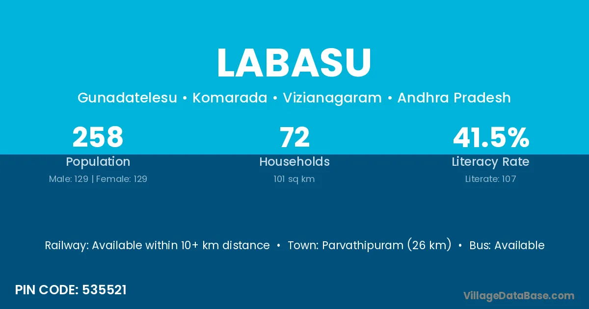 Parvathipuram (26 km) is the nearest town to Labasu village for major economic activities and is located approximately 26 km away.