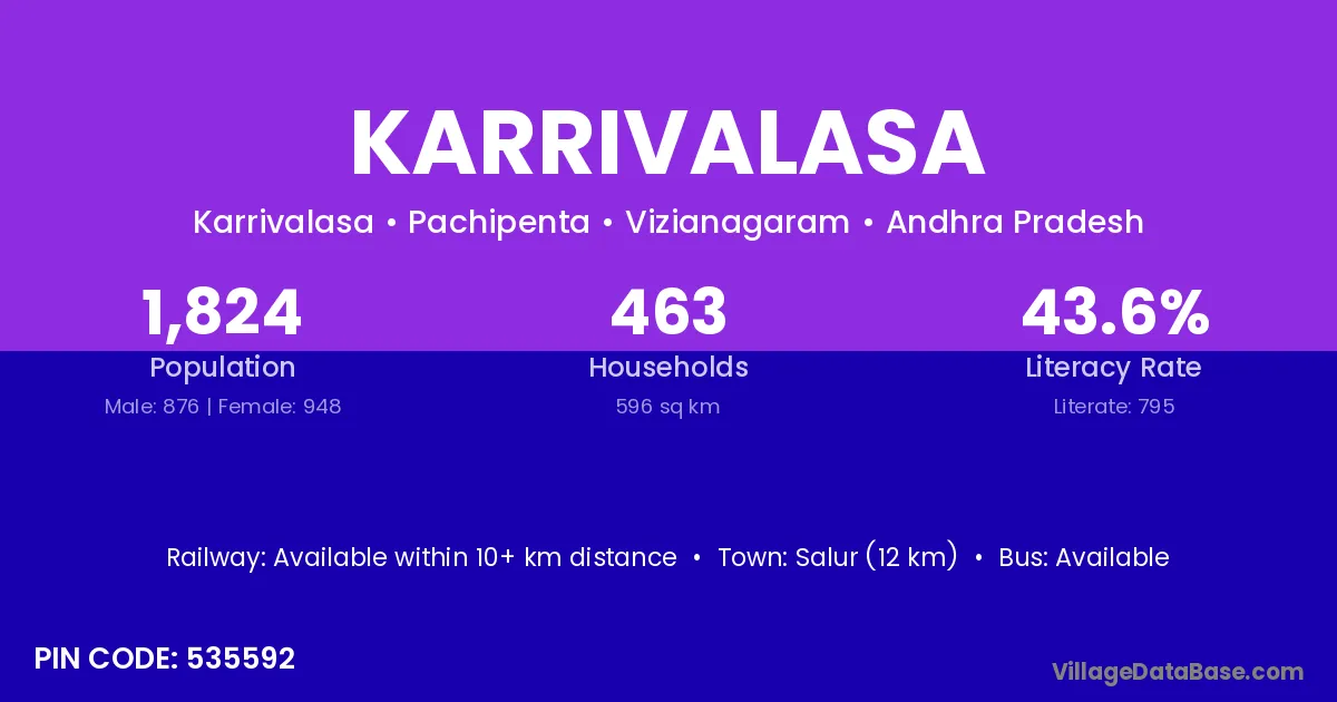 According to Census 2011 information, the village code of Karrivalasa village is 535592.