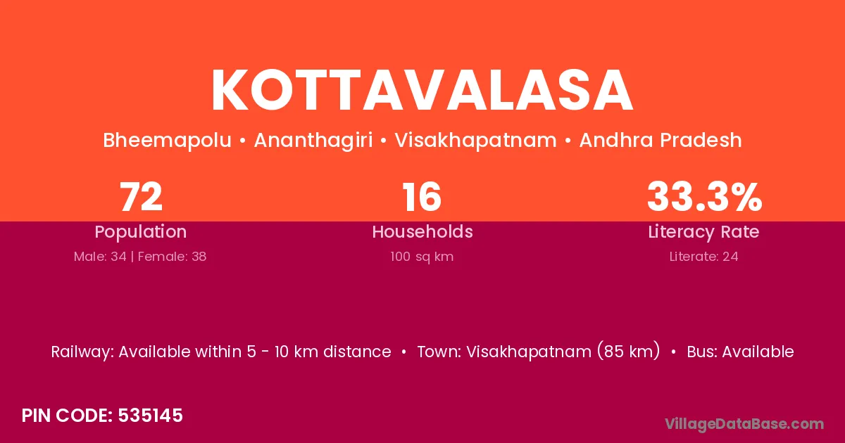 According to Census 2011 information, the village code of Kottavalasa village is 535522.
