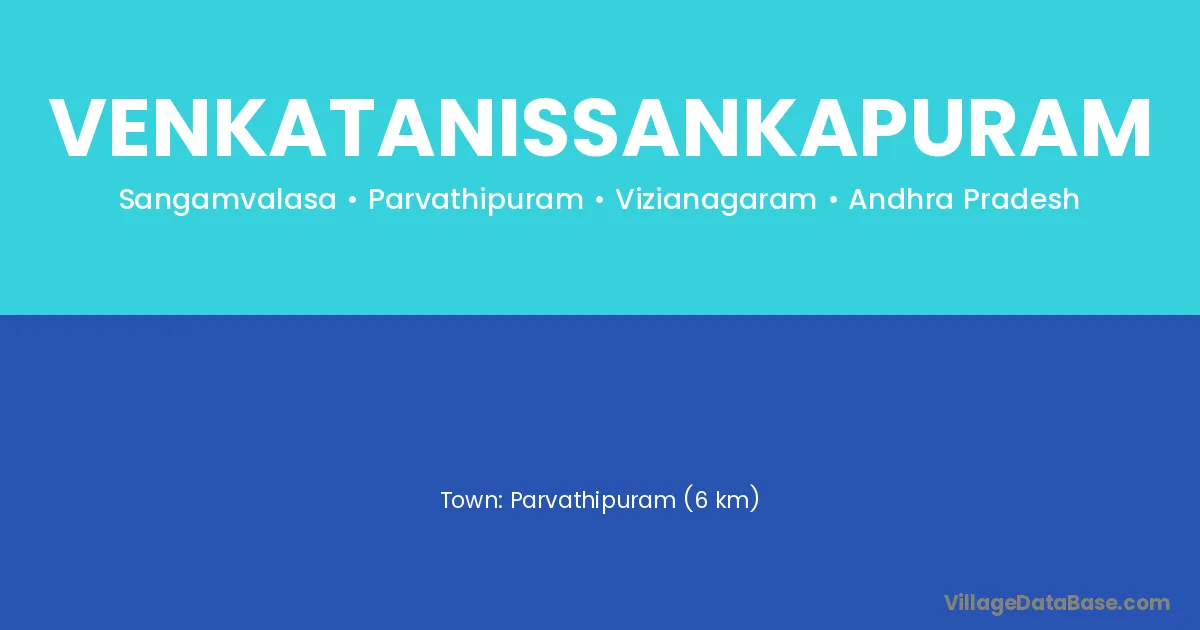 Parvathipuram (6 km) is the nearest town to Venkatanissankapuram village for major economic activities and is located approximately 6 km away.