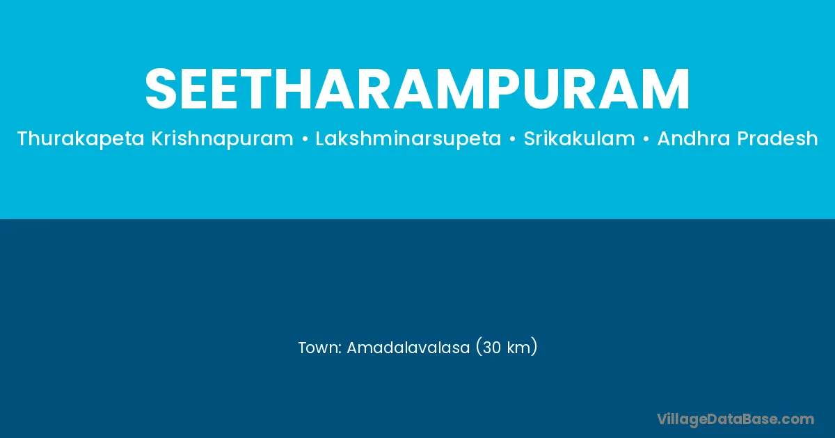 Bobbili (25 km) is the nearest town to Seetharampuram village for major economic activities and is located approximately 25 km away.