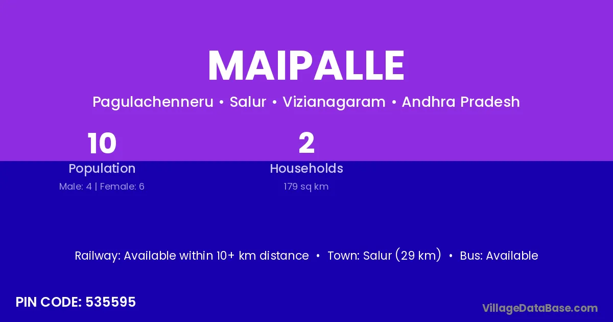 Salur (29 km) is the nearest town to Maipalle village for major economic activities and is located approximately 29 km away.
