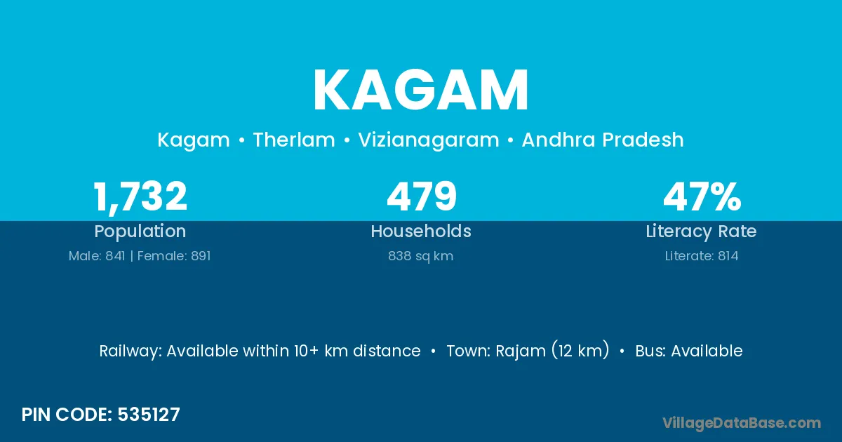 Rajam (12 km) is the nearest town to Kagam village for major economic activities and is located approximately 12 km away.