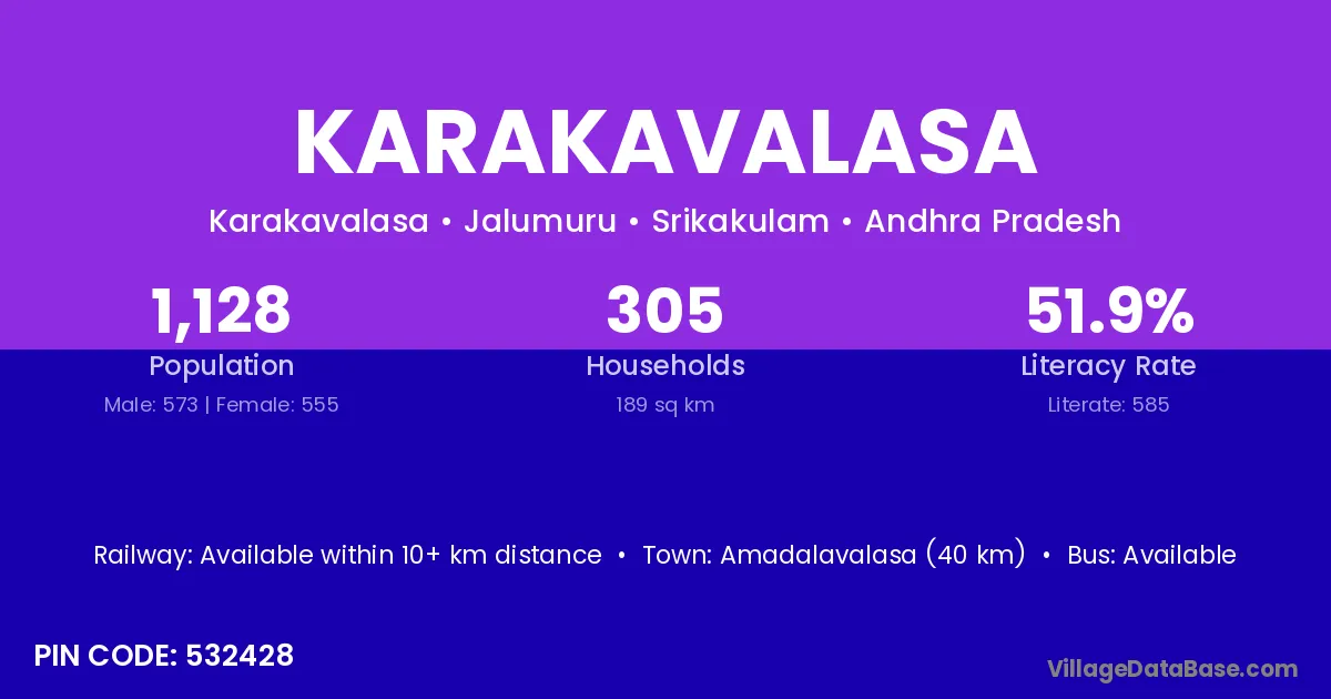 According to Census 2011 information, the village code of Karakavalasa village is 535281.