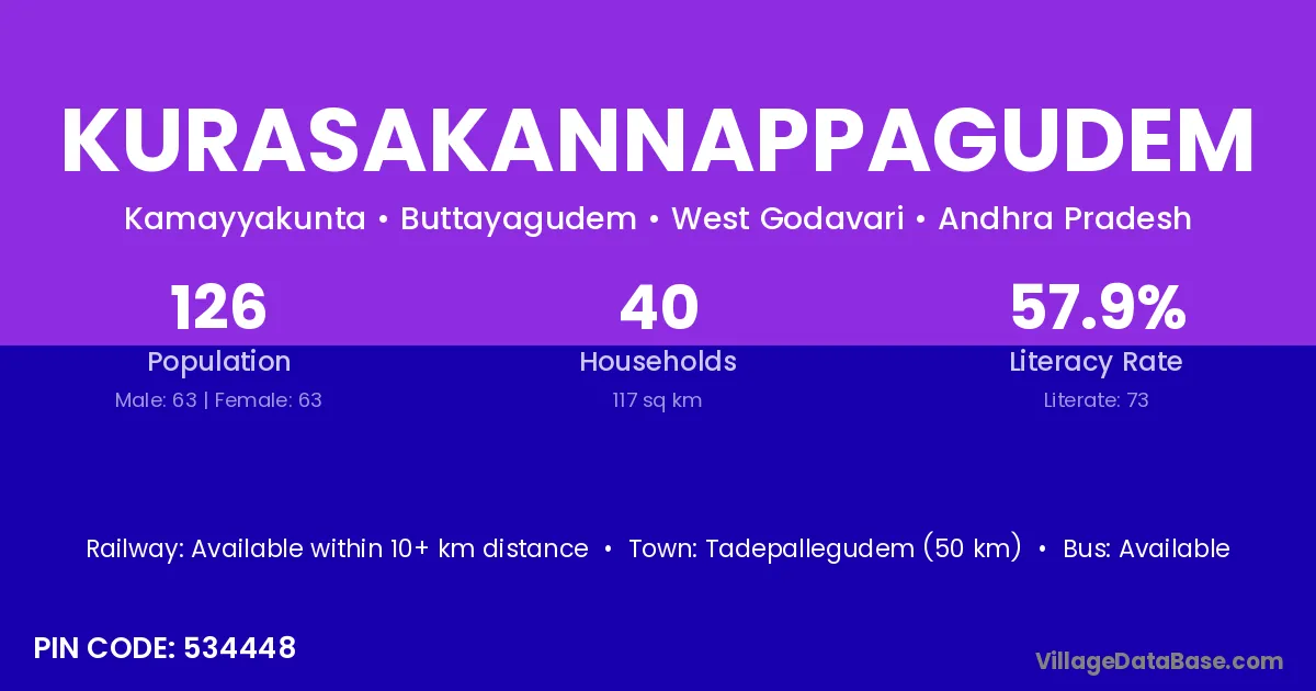 Kurasakannappagudem village has a total population of 126 people, of which 63 are males and 63 are females.