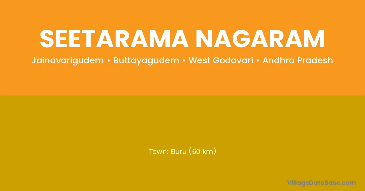 Eluru (60 km) is the nearest town to Seetarama Nagaram village for major economic activities and is located approximately 60 km away.