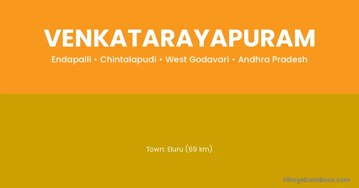 Eluru (69 km) is the nearest town to Venkatarayapuram village for major economic activities and is located approximately 69 km away.