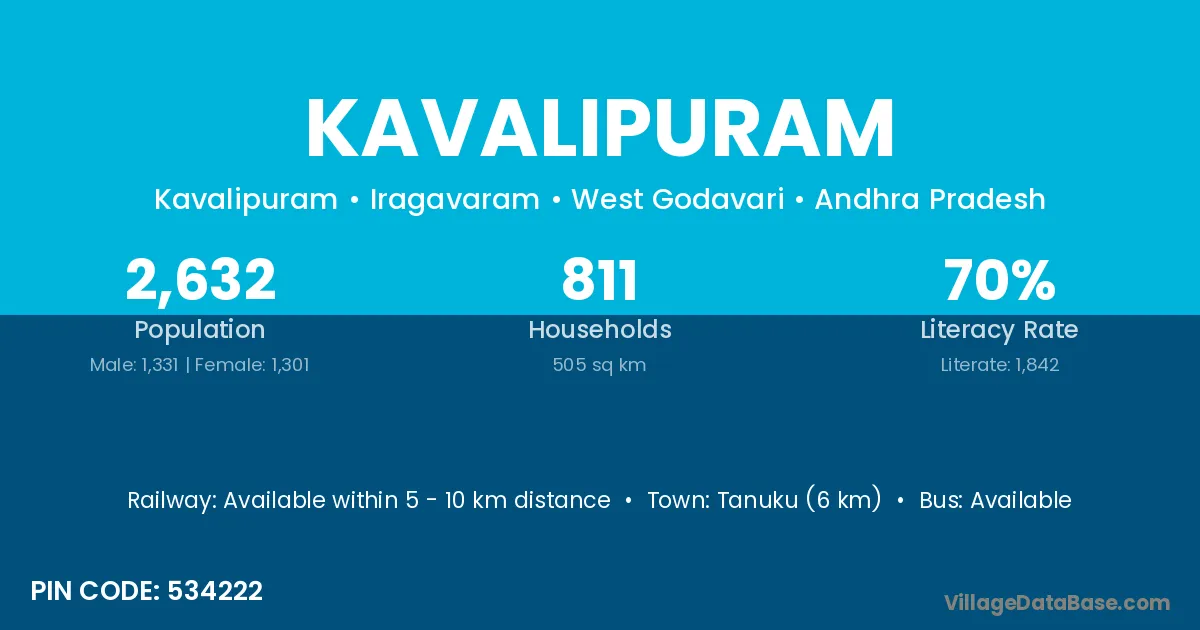 According to Census 2011 information, the village code of Kavalipuram village is 534222.