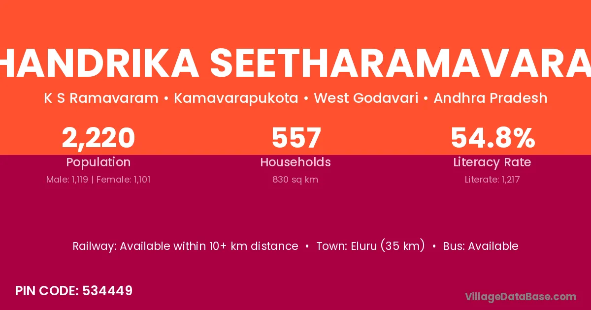According to Census 2011 information, the village code of Khandrika Seetharamavaram village is 534449.
