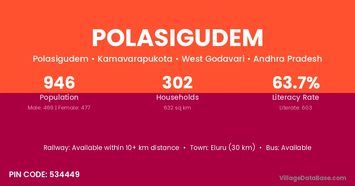 Polasigudem village has a total population of 946 people, of which 469 are males and 477 are females.
