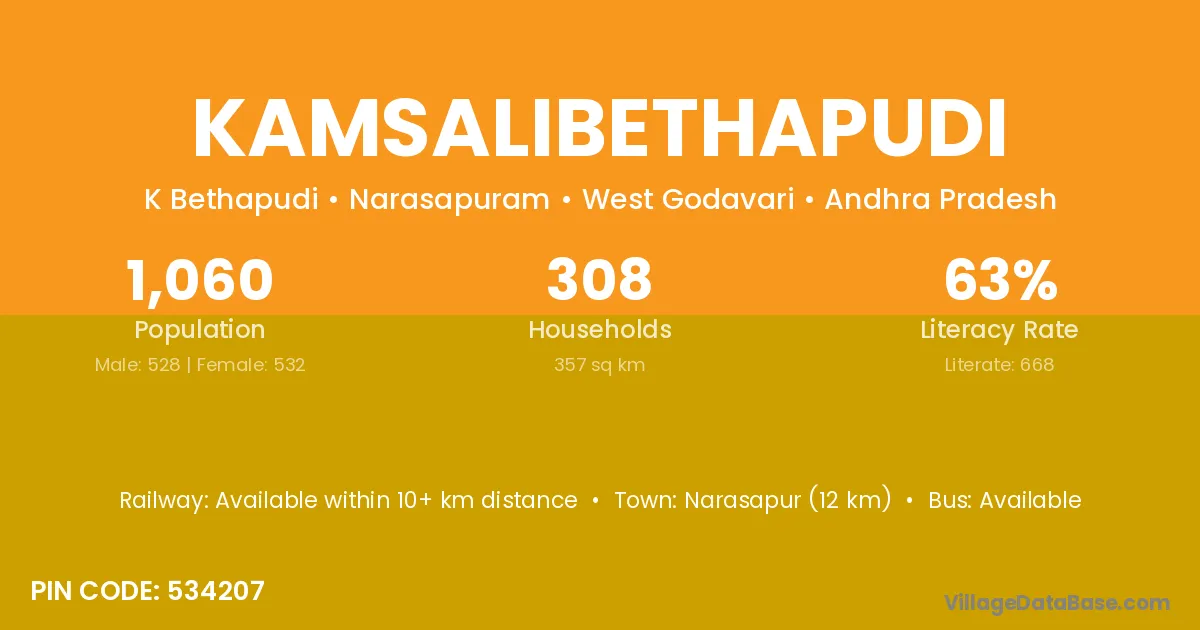 Kamsalibethapudi village has a total population of 1,060 people, of which 528 are males and 532 are females.